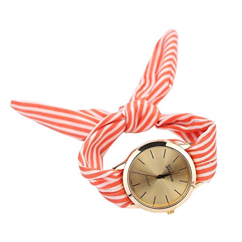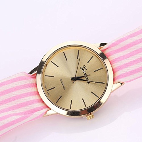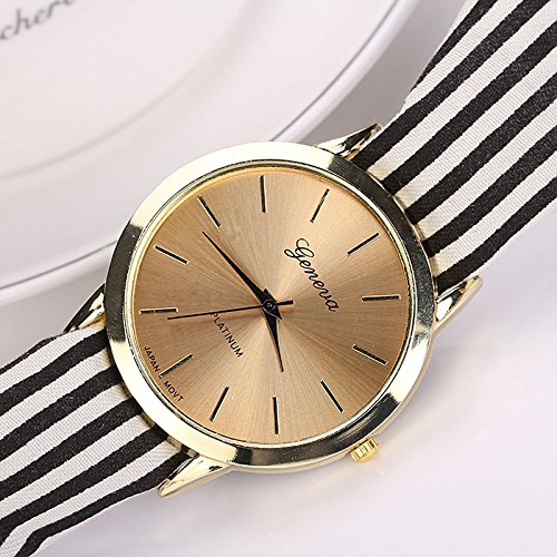 -. Title : Malltop Elegant Women Floral Stripe Cloth Bracelet Mineral Glass Dial Window Quartz Analog Wrist Watch