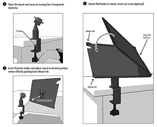 Arkon Custom Fit Apple iPad 4 3 2 Heavy Duty 4 inch C Clamp Tripod Table Desk or Cart Mount