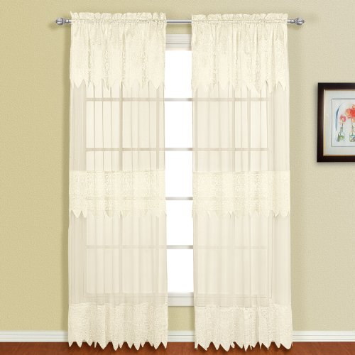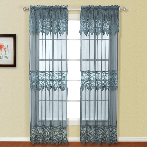 "Valerie" Pleases The Eye And Enhances Any Decor. Alternating Macrame Look With Voile In Six Very Bold Colors! Elegant Points On Bottom Complete The Look. Coordinating Kitchen Tiers, Panels With Attached Valance, And Valance And Swag Pair Separates Available!Feature