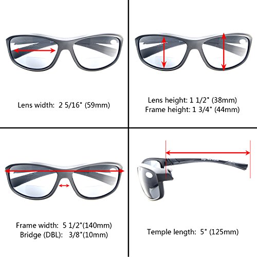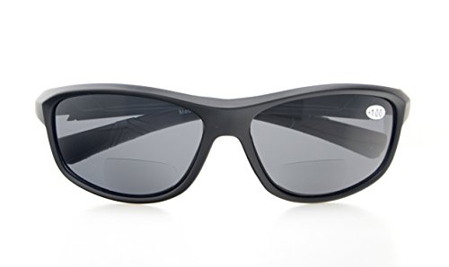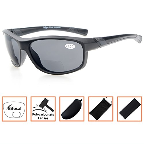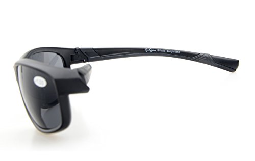 Womens Sports Polarized Bifocal Sunglasses Lightweight TR90 Frame UV 400 Protection Outdoor Sun Readers Matte Black Frame Grey Lens+1.5