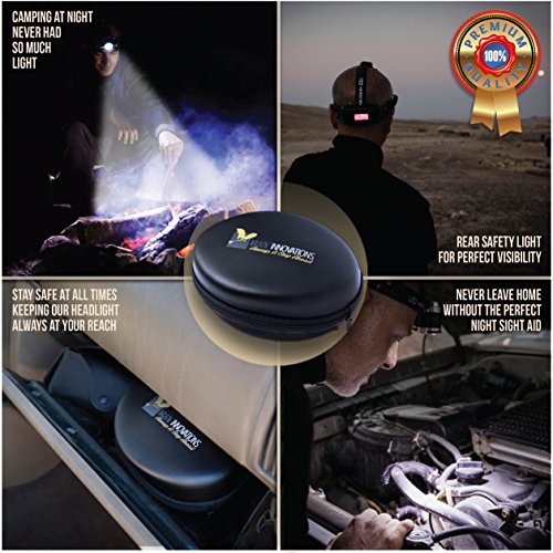 - SAFETY FIRST- Instantly improve your visibility - Night Time visibility is a major issue when it comes to your safety. High numbers of pedestrian accidents have been proven to be caused by poor night visibility. Our Ultra Bright Headlamp has both front and rear lights to keep you visible from far on both directions.do not leave home without one. Keep in your car glove compartment for emergencies as well