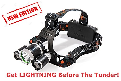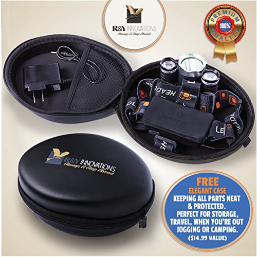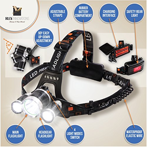 Super Bright LED Headlamp Zoomable 4 Modes 6000 Lumens & USB Charger, Rechargeable Batteries Powered, Waterproof, Helmet Light For Camping, Running, Hiking, Extreme 100% GUARANTY + GIFT by R&Y