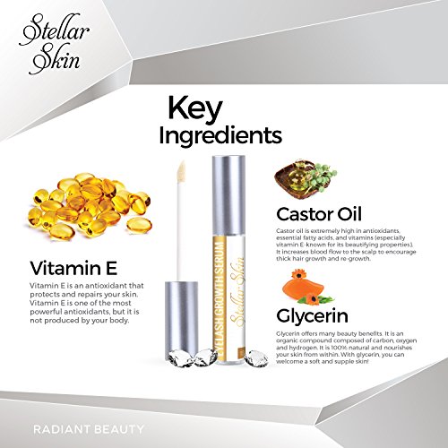 Are you looking for longer eyelashes and thicker eyebrows? Achieving longer, fuller eye lashes without extensions or falsies may seem too good to be true, but if you want lengthier eye lashes that are the real deal, it is possible with our eyelash growth serum. It will help you to grow thicker and longer lashes in as little as 2-4 weeks. And the Stellar Skin Eyelash Growth Enhancer Serum treatment is simple and fast to apply! And on top of that, this product is 100% natural and cruelty free and Made in the USA.