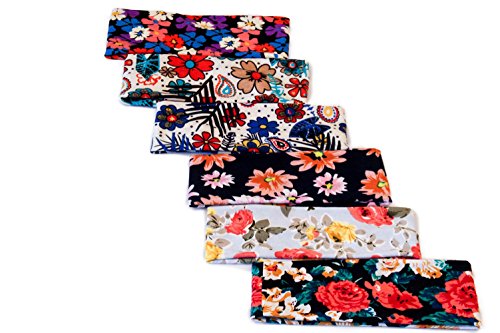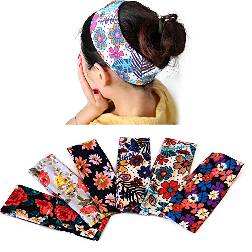 Yeshan 6 pack Moisture Wicking Elastic Headband,Hairband,Stretch Head wrap for Running Workout Yoga and Fitness,flowers design