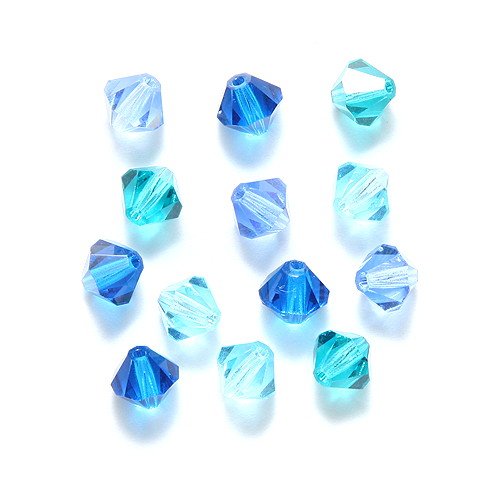 Preciosa 6mm bicone Blue Lagoon mixture contains Blue Zircon, Aqua Bohemica, Capri Blue, Sapphire and Light Sapphire. If you're looking for all the BLING of superior glass crystal without the KAH-CHING of high priced brand names, then Preciosa genuine Czech crystal is exactly what you've been searching for. Preciosa offers all the same great quality and artistry of other leading crystal manufacturers at about HALF the cost. Preciosa is a World leader in the manufacture of crystal chatons, beads and jewelry components boasting a broad variety of shapes, sizes, colors and coatings. Due to the high lead content of the crystal, Preciosa crystals are more durable and each precision cut facet emanates an irresistibly brilliant sparkle unparalleled by lower quality imitators.Feature