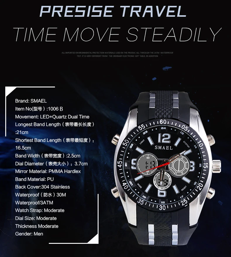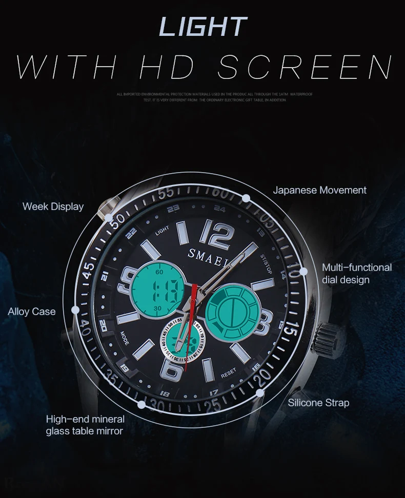 Feature:Auto Date,Shock Resistant,Stop Watch,Diver,Back Light,Chronograph,LED display,Alarm,Repeater