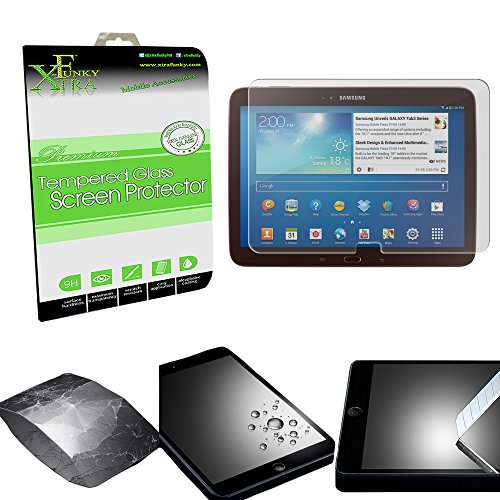 -. Binding : Personal Computers -. Brand : Xtra-Funky -. Feature : Real 100% Genuine Tempered glass construction for enhanced impact resistance and reduce the chances of screen damage / The surface has a hardness of 9H,which is 3 times stronger than regular screen protector film. Sharp objects such as knives and keys will not scratch the surface. / The screen protector has an "Oleophobic" coating, which reduces fingerprints and other contaminants which makes the screen protector easy to clean. / In case of screen damage, the screen protector will break into small pieces that are not sharp, making it a lot safer than other glass screen protector available in the market. / This will feel like plastic, however we guarantee it is real 100% tempered glass. -. Label : Xtra-Funky -. Manufacturer : Xtra-Funky -. PackageQuantity : 1 -. ProductGroup : Personal Computer -. ProductTypeName : COMPUTER_ADD_ON -. Publisher : Xtra-Funky -. Studio : Xtra-Funky -. Title : Xtra-Funky Exclusive High Quality Real 100% Genuine Tempered Glass Screen Protector For Samsung Tablets
