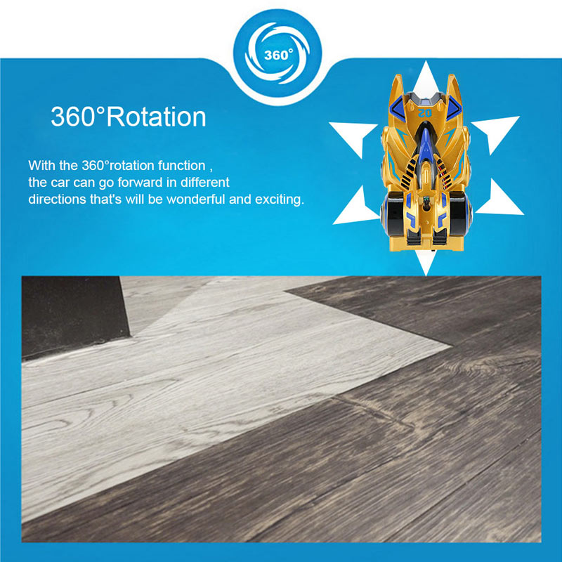 This mini RC wall climbing car can defy gravity. It can running on any smooth surface, such as wall, glass, ceiling, floor. In addition, superb functions and sound effects will bring you special enjoyment. Moreover, Super cool shape and lightweight?body is given to this car. Nothing is impossible in your hand. Drives anywhere! A really perfect gift to children.
