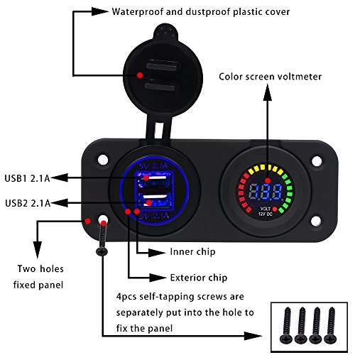 Color voltage display and dual apertures.Colorful lights with fine workmanship look hign-end and beautiful. Also dispatching stator, terminal and screw to help you install conveniently. Smart chip internal unique design can prevent the current damage to your electronic products to protect your assets.