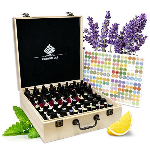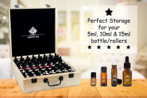 SXC 64 Slots Essential Oil Wooden Box Storage Case With Handle. Holds 64 Bottles & Roller Balls. Large Organizer Best For Keeping Your 5ml, 10ml,& 15ml Oils...