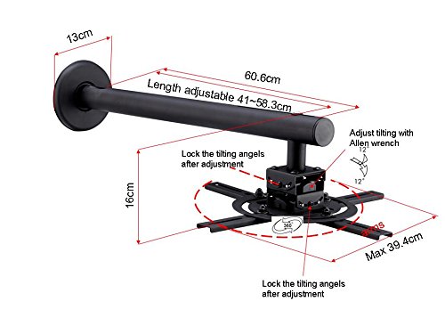 - Title : Projector Universal Wall Mount 16" to 23" Extension from Wall, Tilted Up and Down 12 Degree and Tightly Locked. 360 Degree Swival, Black Color