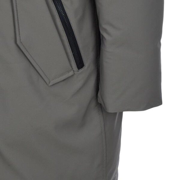 깔끔한 솔리드 컬러의 탈착 가능한 후드의 퍼를 배색하여 세련된 외관을 연출했으며 허릿단 안쪽의 스트링을 더해 핏을 조절할수 있는 캐주얼한 점퍼입니다