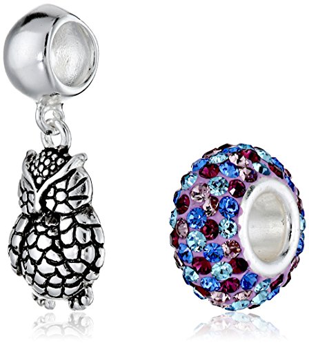 CHARMED BEADS Sterling Silver Multi-Crystal Owl Bead Charm Set