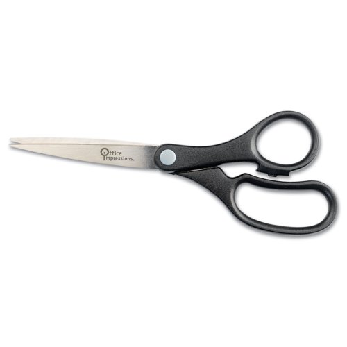 Studio : OFFICE IMPRESSIONS Publisher : OFFICE IMPRESSIONS Binding : Office Product Product Description Affordable scissors are great for office work. Stainless steel blades cut through multiple materials, including paper or cardboard. Cut Length: 3 3/4"; Scissor Length: 8"; Tip Type: Pointed. 0