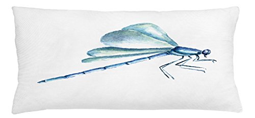 Dragonfly Throw Pillow Cushion Cover by Ambesonne, Hand Drawn Watercolor Dragonfly Figure with ...