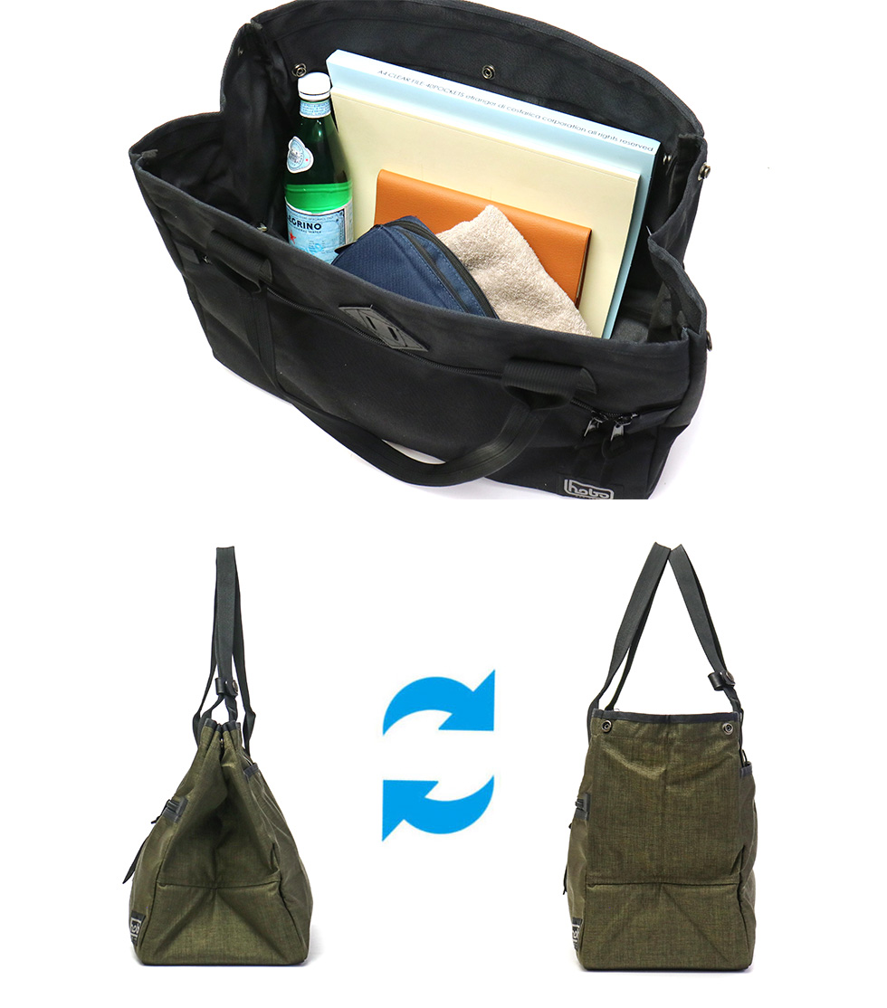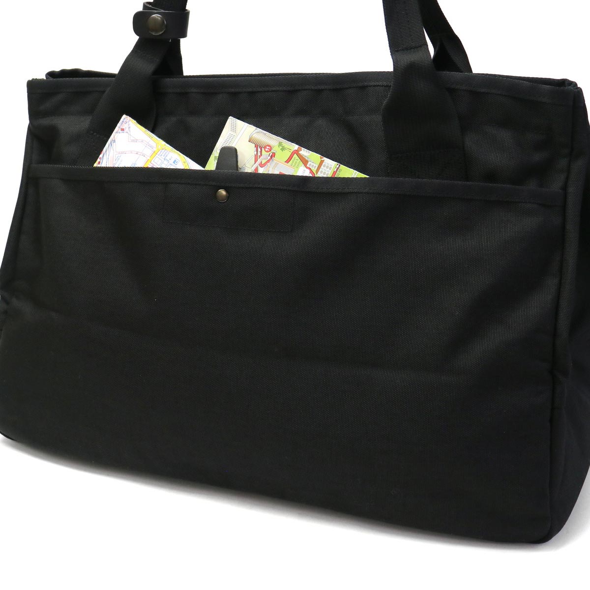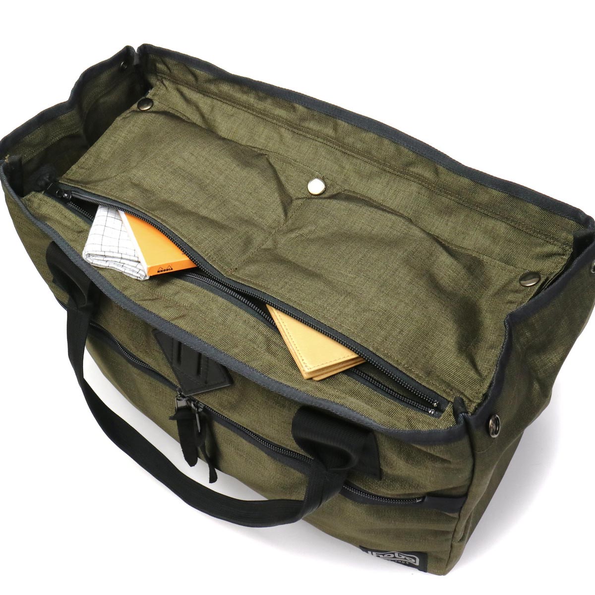 The main room is big enough to fit B4 size perfectly. Because there is gore, there is also storage capacity beyond appearance. In addition, you can adjust the size with the snap buttons on both sides, so it is optimal for everyday use that doubles on and off.