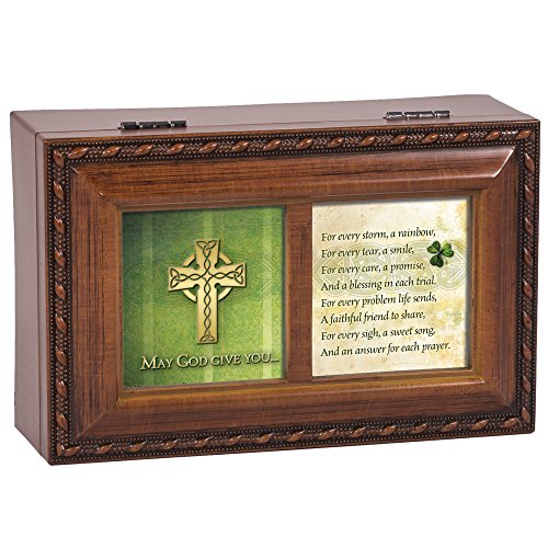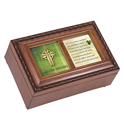 May God Give You Celtic Cross Petite Woodgrain Music Musical Jewelry Box Plays Amazing Grace