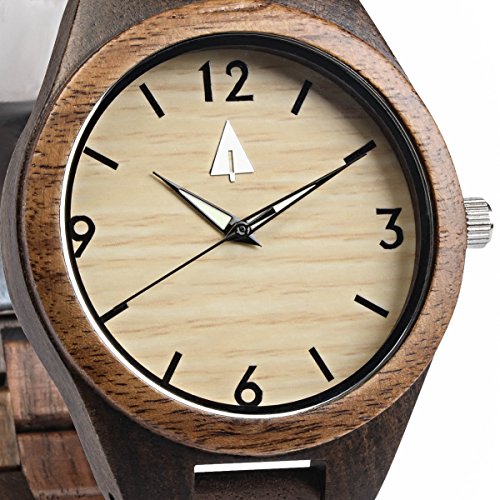 MADE FROM REAL WOOD: This men's watch is made of 100% real Walnut and Ebony; with no chemicals or paints used. This combination gives off a contrasting color that gives off a rugged masculine look. It is safe on the skin and won't cause any rashes or irritation.