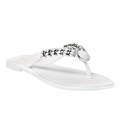 -. Title : Women's Vegan Jeweled Adorn Flat Jelly Sandals