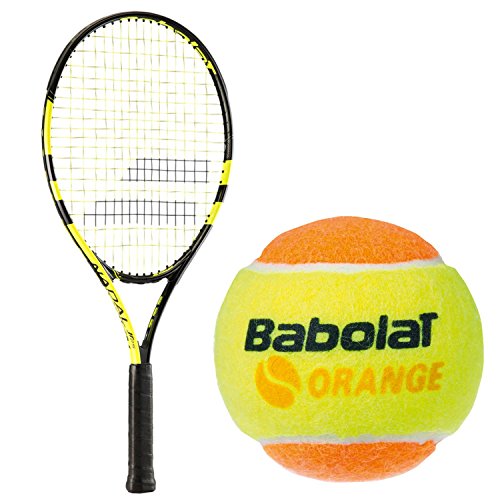 Play your best tennis with Rafael Nadal's namesake racket! The Babolat Nadal Junior tennis racket series is perfect for juniors of any age and height looking for a lightweight, maneuverable racquet, at the proper length, for little tennis players ages 5-10. These economical, beginner to intermediate rackets for children are made of a lightweight aluminum frame that's easy to swing, and for long periods of time, without tiring or hurting their arm. They are available in 19, 21, 23, 25, and 26 inches, so they can be tailored to the appropriate age and height. Send your child to the tennis court with everything they need to succeed! This bundle comes with your choice of age specific, Babolat Play and Stay tennis balls: Regulation (ages 10 ): Standard regulation tennis balls - full court playGreen (ages 9-12): Slightly reduced bounce than a standard tennis ball - full court playOrange (ages 9-10): More reduced bounce - reduced or singles court playRed Felt (ages 5-8): Greatly reduced bounce and slower moving - small, abbreviated courtRed Foam (ages 5-8): Even slower moving than the felt balls - small, abbreviated court 0 |