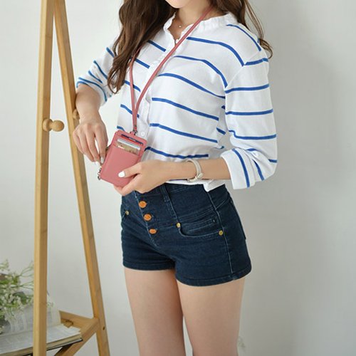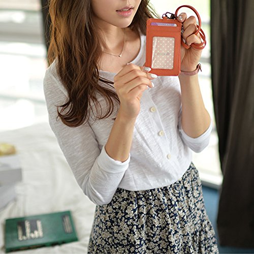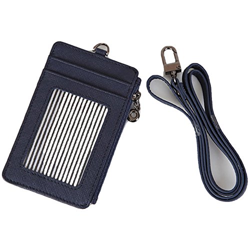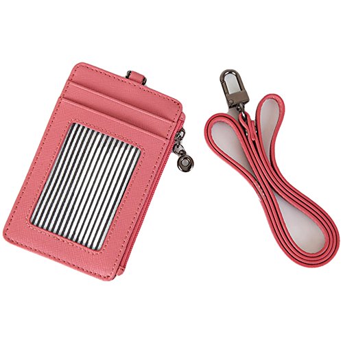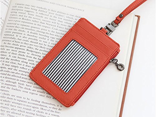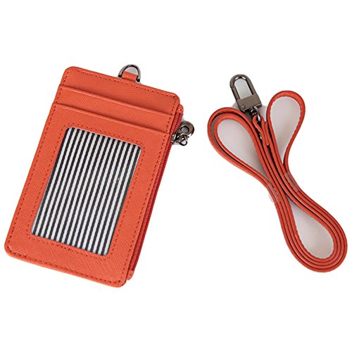 FromBi Melon Slim Cowhide Leather Zip Card Holder Wallet with Neck Strap