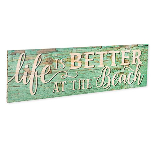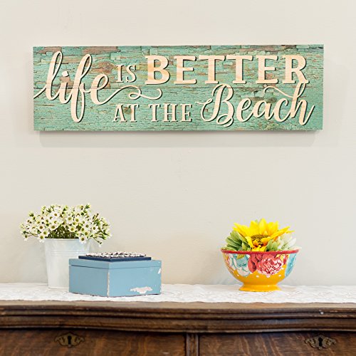 Life is Better at the Beach Distressed Teal Green Design 7 x 24 Wood Pallet Wall Art Sign Plaque