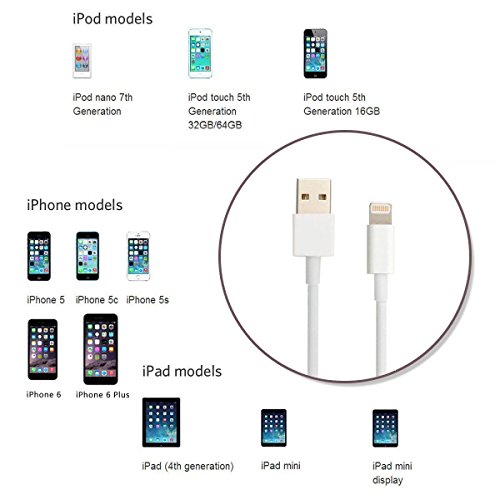 - 100% brand new, high quality cable for iPhone 6s /6splus/ 6 Plus/ 6 / 5s / 5c / 5, iPad Air / Air 2, iPad mini / mini 2 / mini 3, iPad (4th generation), iPod nano (7th generation), and iPod touch
