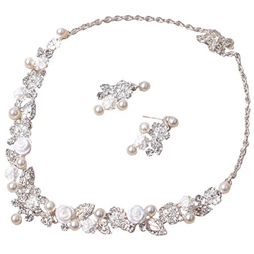 -. Title : (Cazycazun) エレガント 薔薇 パール 輝く ネックレス イヤリング ピアス 2 点 / 結婚式 パーティー