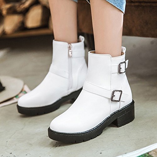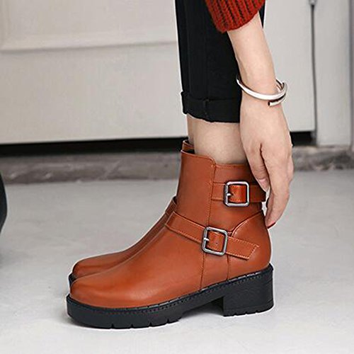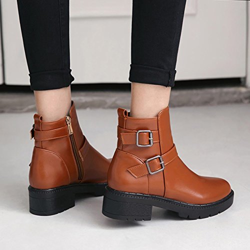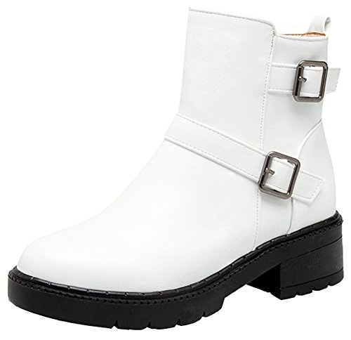 (Mofri)/Women's/Boots/DIRECT FROM USA/Mofri Women's Fashion Buckle Belt Side Zipper Short Riding Boots Block Medium Heel Platform Ank...