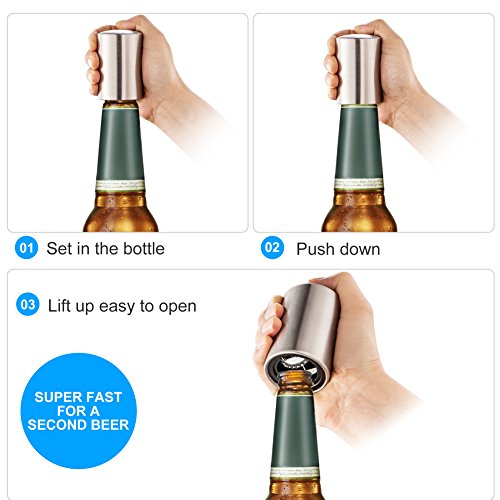 -. Feature : ★EASY TO USE - Just put the beer opener onto the bottle and press the top of the opener. You just push it down on a bottle, it clicks, and the cap is removed. Takes less time. / ★SPEED OPENER - This bottle opener is built to last and will open hundreds of bottles within a few minutes. Size really doesn't matter here. / ★DUAL FUNCTIONALITY - Opens bottles instantly and great beer bottle cap catcher with magnet. Will not bend caps once off which makes it great for Cap Collectors. / ★LIGHT WEIGHT-durable material and stainless steel.Size: 3.15*2.16*2.16 inches,Well sized to make it convenient and easy to carry. Better than wall mounted bottle openers. / ★PERFECT GIFT - Great Christmas gifts or Stocking stuffers for men, Bartender, Party favors, or Birthday gifts for dad. If you love to socialize and party then this is the perfect bottle opener for you.