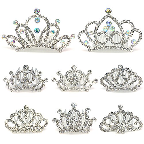 -. Feature : Elesa Miracle 8pc Girl Hair Accessories Rhinestone Tiara Crown Hair Comb Value Set, P.R.Incess Flower Girl Wedding Party Favor Hair Jewelry