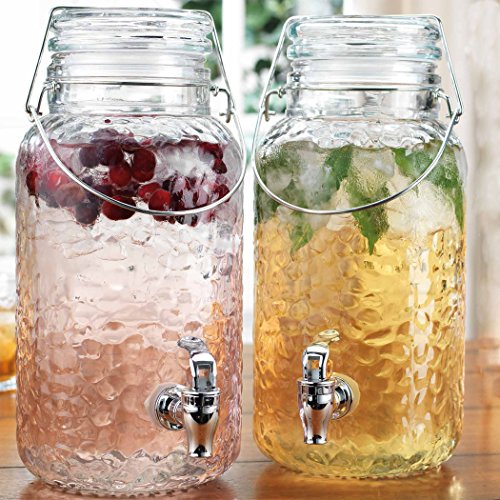 Product Description These beautiful glass beverage dispensers are crafted of quality glass material and the perfect way to serve your favorite drinks at picnics and gatherings. The dispenser have classic designs that are perfect for any occasion, either formal or informal, indoor or outdoor. The spigot, located towards the bottom of the dispenser, makes serving drinks easy and mess free. You'll never have to worry if your guests need more. 0