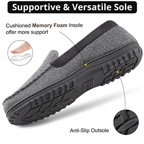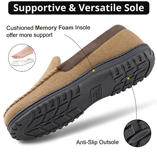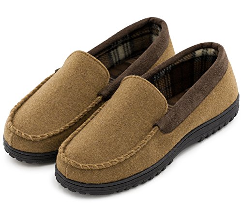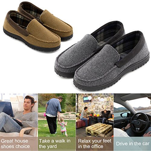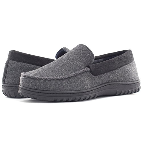 Leave your 9-to-5 world far behind in this cozy moccasin from HomeTop - Classic house shoes which will never go out of style. These moccasins are perfect for lounging at home or around the house. Stay warm and comfortable with these classically detailed house slippers with a touch of boat shoe thrown in for good measure. Features: - Thick breathable wool uppers provide ultimate warmth and comfort. - Soft fleecy patterned lining keep your feet cozy and relaxed. - Multilayer memory foam insole allows the slipper to mold to the shape of your foot creating the most comfortable custom fit. - Versatile indoor/outdoor sole is durable slip resistant to maintain your sturdy stride. - Easily cleanable by hand. Use a wet towel to spot clean where needed. Sizing Guide: 40-41 | US Men's 7-8 | Length: 9.8" 42-43 | US Men's 9-10 | Length: 10.6" 44-45 | US Men's 11-12 | Length: 11.5" 46-47 | US Men's 13-14 | Length: 12.3" Tips: - Get 1 size down if you are between sizes (such as 8.5, 10.5, etc). - If you find loose threads, do not pull. Cut with scissors. - With HomeTop, you're taking no risk with your purchase. We offer a 100% no risk money-back guarantee. 0 |