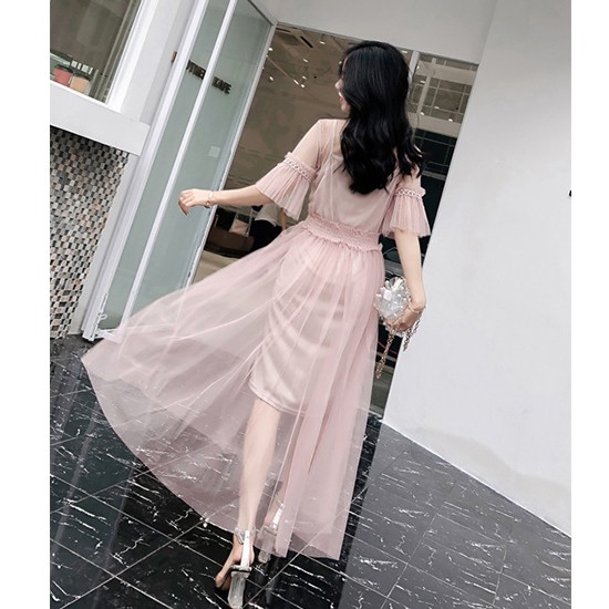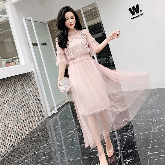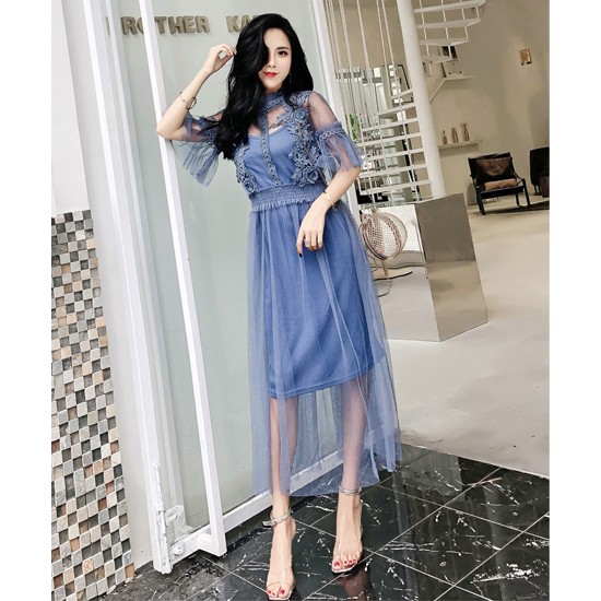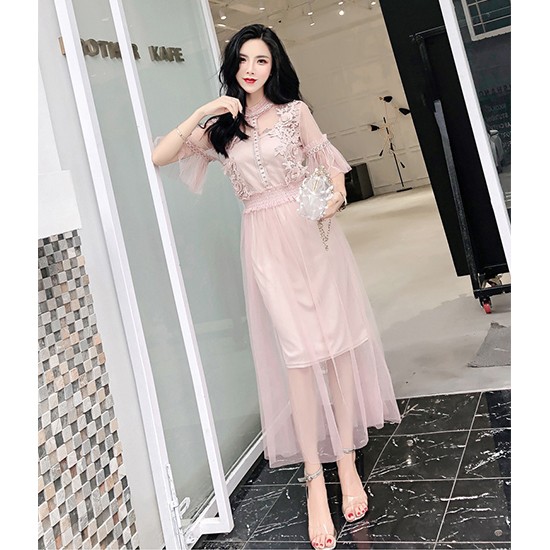 レースと刺繍のデザインがとてもセクシーなパーティーワンピースです。