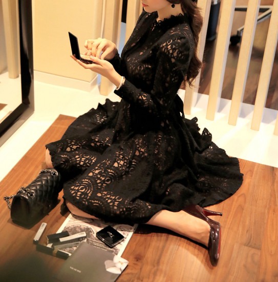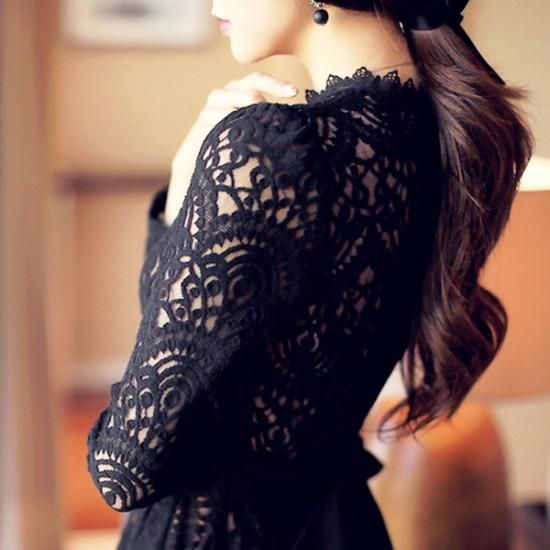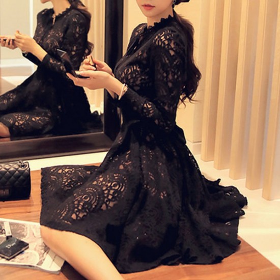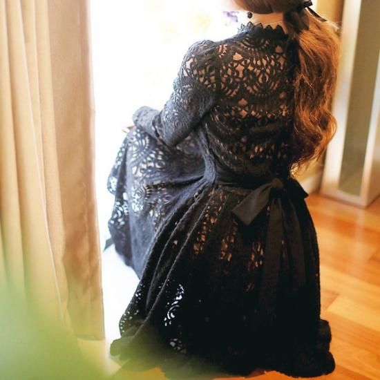 ワンピース ミニ丈 ドレス レース ブラック リボン シースルー 長袖 エレガント 上品 可愛い お呼ばれ パーティー drgz0635