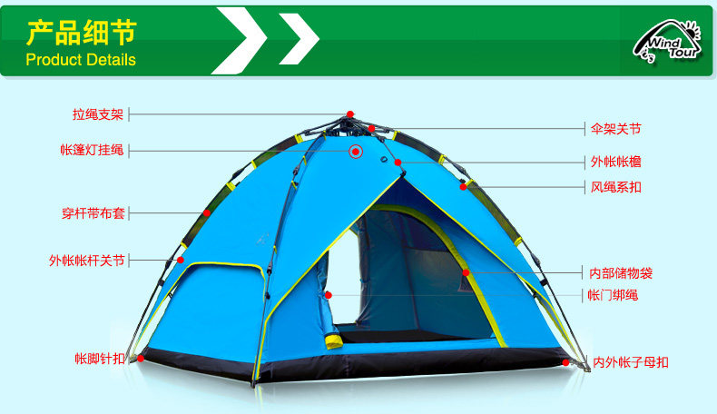 Inner tent size :( L * W * H cm) 185 * 185 * 125cm