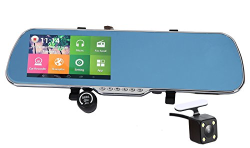 -. Feature : This mirror dash camera is 5" large size capacitve touch screen, Built-in GPS Navigation, auto speed-detection, and offline US map, very easily for driving car out, never mind lost / Built in MP3&MP4 player: enjoy your Music and video at any time: just copy SD card's files to your car camera's internal memory, enjoy and enjoy yourself while driving / Built-in FM transmitter: connect to your car's audio, and listen the broadcoast you like / Built-in WiFi and Android 4.4 operating system: download app and music freely, manage your files easily / Dual camera and reverse rearview, 170 wide angle, picture-in-picture, G-sensor, loop cycling, time water mark, parking monitor(with free converte cable), motion detection