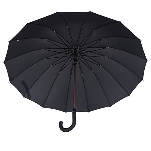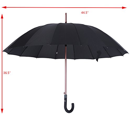 -. Brand : Juvale -. Color : clear -. EAN : 0096362219570 -. Feature : Strong and sturdy with a black opaque canopy and a classic stylish hooked handle provides you with a reliable grip / Opens quick and easily with the simple push of a button / Designed to be easily closed with with minimal effort and force / The large design allows great cover from the elements. As well as room for more than one person. / Dimensions: 36.5 inches in length 44.5 inch Diameter when open -. ProductGroup : Apparel -. ProductTypeName : LAGE -. Title : Black Umbrella - Large Automatic Hooked Handle All Weather Parasol - 36.5" -. UPC : 096362219570