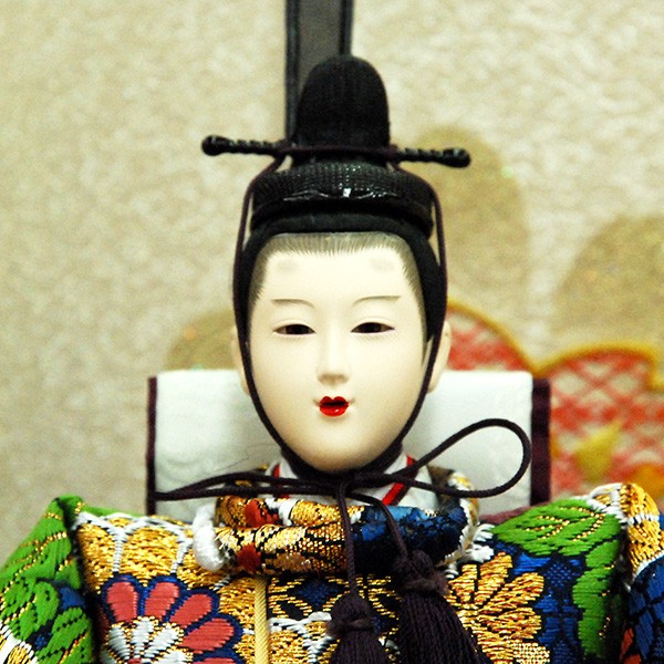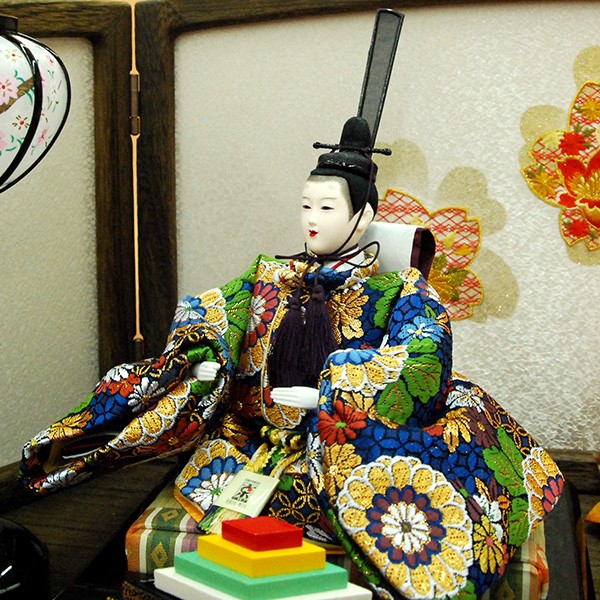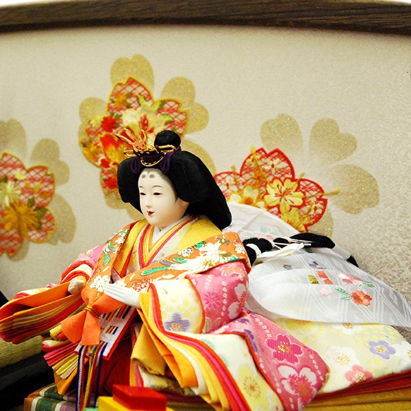 ・台座・屏風等には落ち着いた色目の雛人形セット。