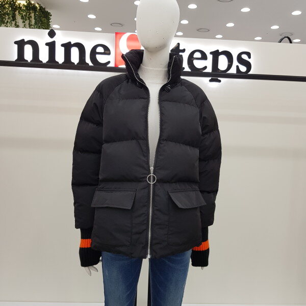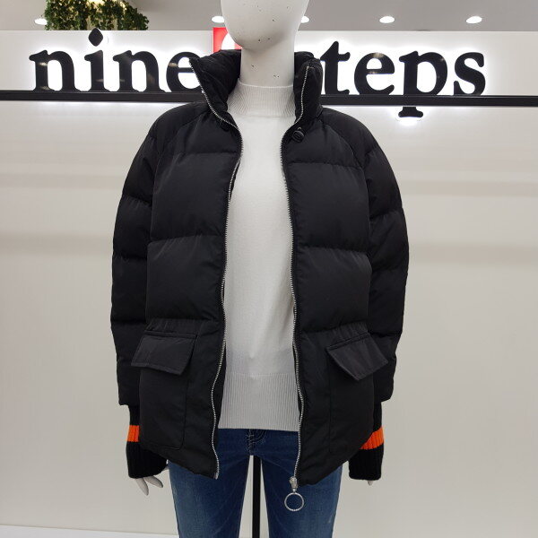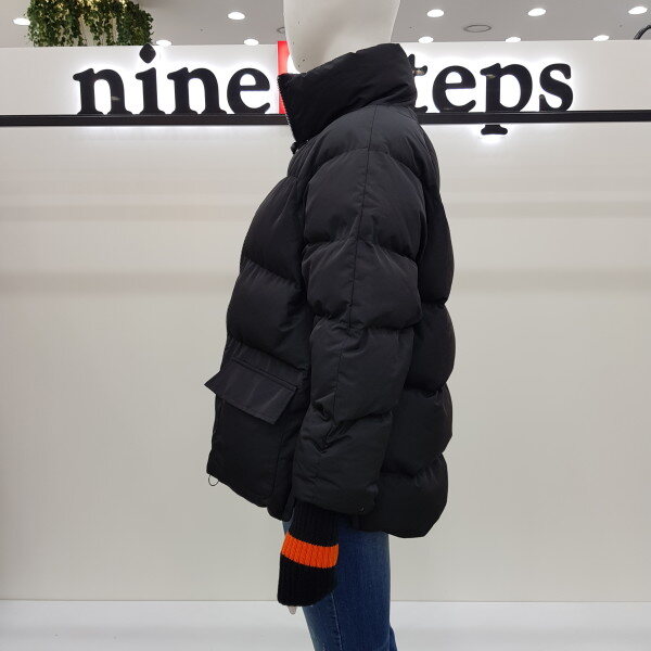시보리 배색이 포인트이며 가볍고 따뜻한 숏패딩입니다