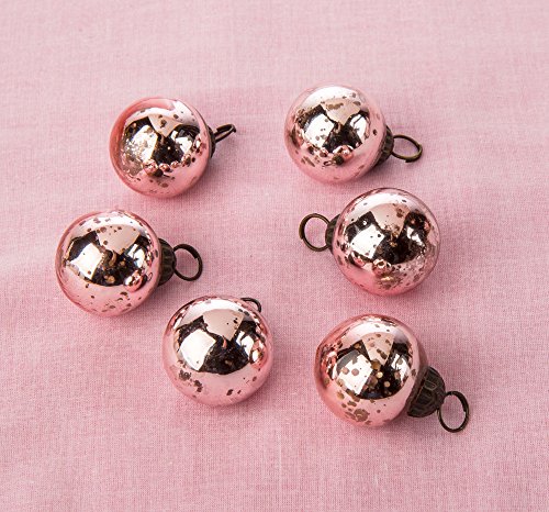 Luna Bazaar Mini Mercury Glass Ornaments (Ava Classic Ball Design, 1 - 1.5 Inches, Rose Gold, Set of 6) - Vintage-Style Mercury Glass Christmas Ornaments