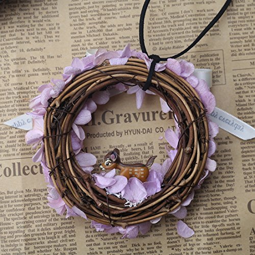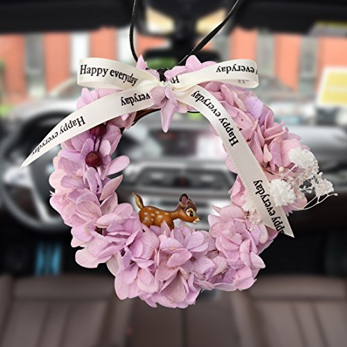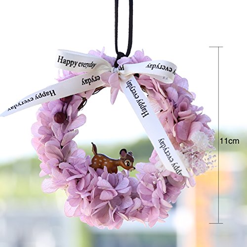 A-SZCXTOP Preserved Fresh Flower Garland With Fawn and Ribbon Car Hanging Pendant Home Decoration and Great Creative Wreath Gift