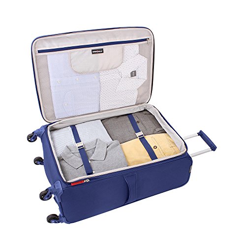 -. Feature : 4 wheel lightweight spinner / Includes convenient wet bag / Aluminum telescopic handle / 1.5" Expansion zipper for added packing capacity / 12 x 17 x 24.5