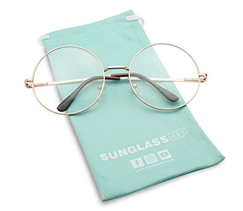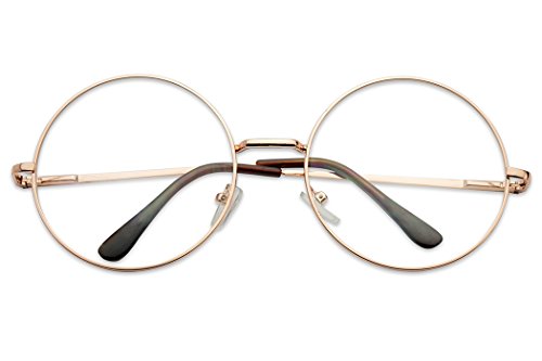 Round Double Metal Wire No Prescription Oversized Sunglasses Clear Lens Gold Circle Frame Glasses
