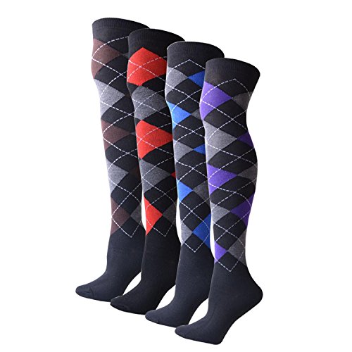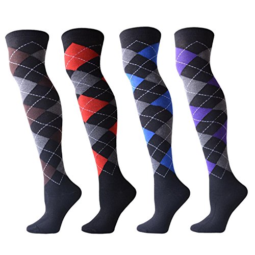 -. Title : YOUNGBEST Women's Knee High Argyle Socks 4 Pack Multicolor Soft Long Socks for Fall Winter