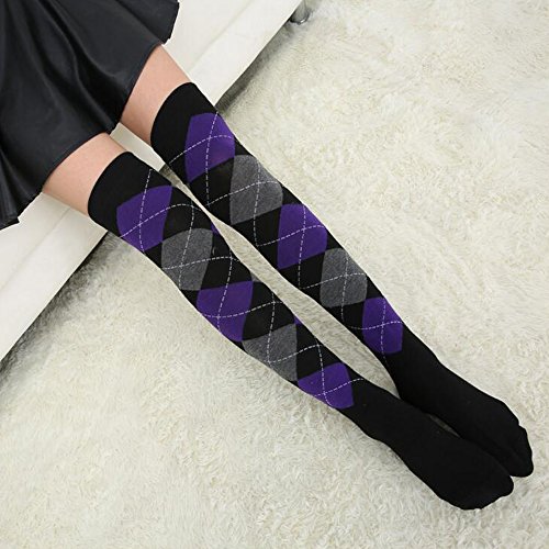 -. Feature : High Quality - Made of 75% cotton, 25% spandex, our women's socks are soft and breathable / Comfortable to Wear - Suitable thickness and lightweight, you could wear them all year round. These knee high women's socks properly cradle your arches, ankles and calves to reduce slipping, sliding and bunching while in motion / Features - Knee high styling socks featuring argyle and stripe fun patterns, meet your various needs / Keep Warm - Premium cotton fabric, stretchy and comfortable, keep warm all day. A gift for yourself or give them as a Christmas, New Year's or birthday gift for your loved one / Occasion - Great accessory for casual outfits, formal suits, uniforms, wedding dress suits, wear your favorite fashion
