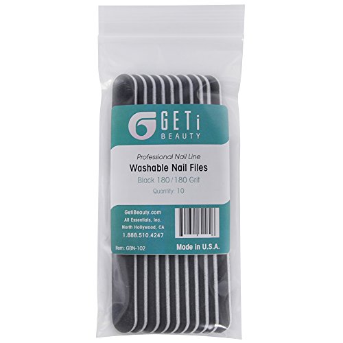 Studio : Geti Beauty Publisher : Geti Beauty Binding : Misc. Product Description Original Geti Beauty 180/180 are Professional Quality Nail Files, Long Lasting, Durable and Made in America Black 180/180 (Medium / Medium) washable cushion nail files specially designed for professionals or home use. Great for Hobbies , Crafts and Gifts. Water Resistant- File are water resistant (up to 10 minutes of immersion) and will not swell, shred or peel apart. Isopropyl or Ethyl Alcohol Resistant- Files can be immersed in (or saturated with) 70-90% isopropyl or ethyl alcohol for up to 5 minutes. Material- Files have heavy duty durable abrasive paper sourced from top paper distributors to be produced and Made in the U.S.A and give you the highest quality longest lasting nail file. Use- Files are widely used at professional salons, and at home. They are also durable to be used for a variety of popular hobbies and crafts. Made in U.S.A 0