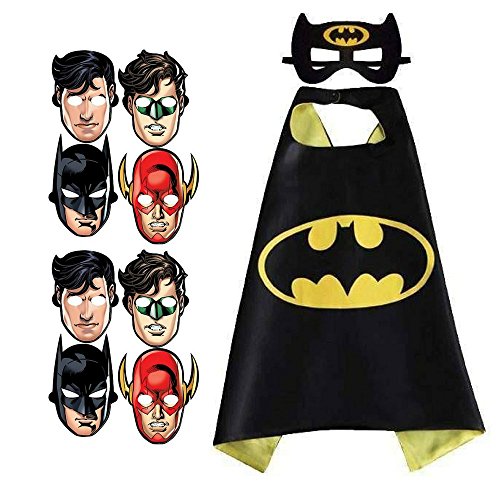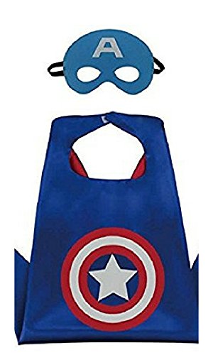 Let kids spark their imagination and have fun while transforming into their favorite superhero! With a double-sided satin cape and matching felt mask, these costumes are designed with comfort and durability in mind. They can be worn in a variety of ways including halloween costumes, dress up play, or for birthday party fun. Ideal for ages 3+ but the elastic head mask and velcro collar make it easy for anyone to wear comfortably.Feature