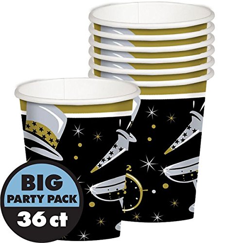Elegant New Year Party Cups Tableware, Black, Paper , 9 Ounces, Pack of 36