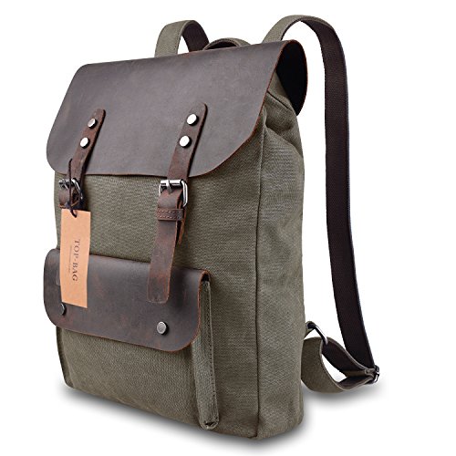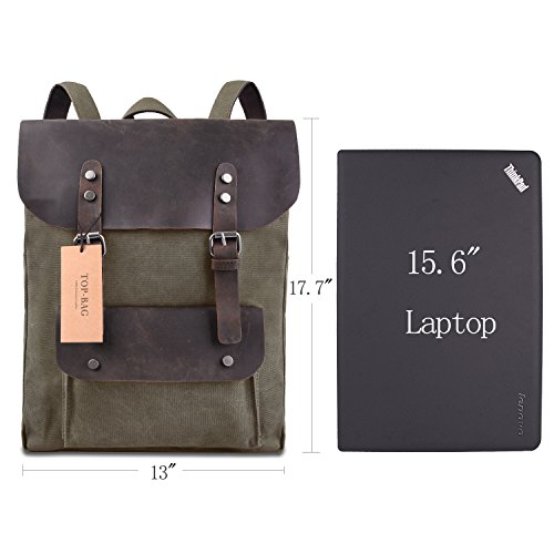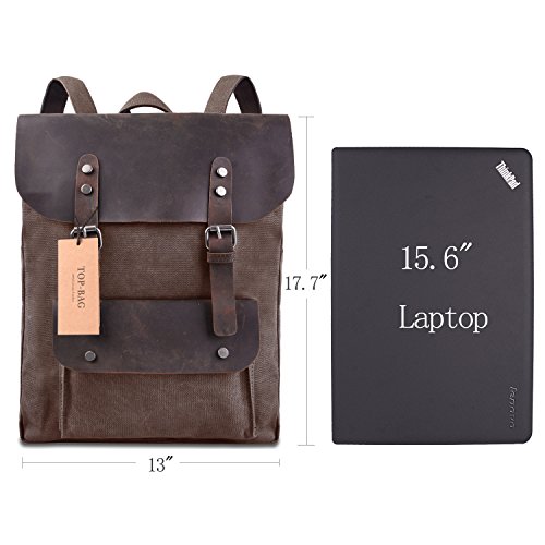 -. Brand : TOP-BAG -. Department : mens -. Feature : Dimension: (L*W*H) 33*12*45 cm / 13*4.7*17.7 inch, hold 15.6 inch laptop easily / Durable strong canvas material and grain leather flapover / Antique Brass hardware, natural cotton lining / Magnetic button clasp, easy on and off to access the front pocket / Please leave a CONTACT NUMBER with your order for our courier service to ensure safe delivery. -. PackageQuantity : 1 -. ProductGroup : Apparel -. ProductTypeName : LAGE -. Title : TOP-BAG Vintage Canvas Leather School Backpack Rucksack Bag Daypack,MC2166